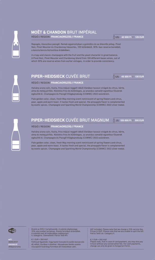 - Pictures and videos may be taken at any time on the rooftop. The 360BAR is not responsible for the content. By entering the Bar you agree to the free utilization of this content.
