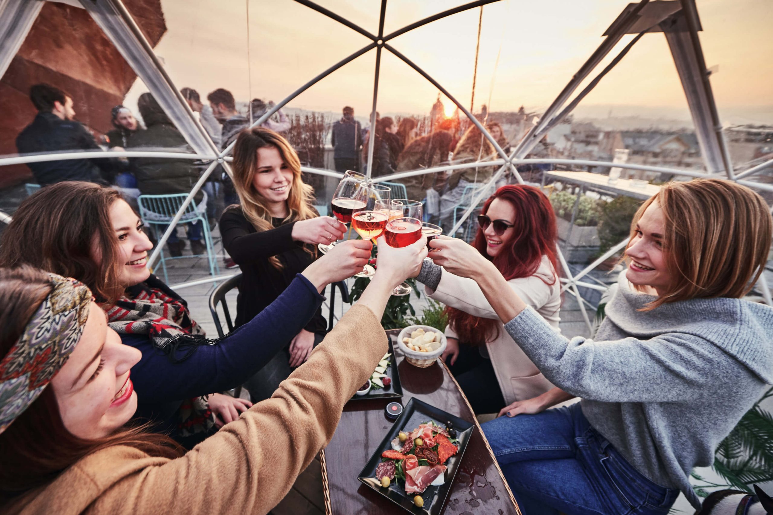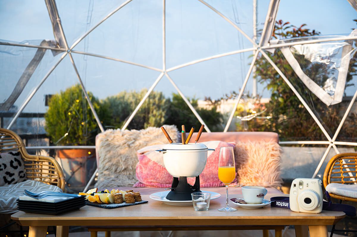We have figured out a very special way to keep you warm and serve you nice cocktails during wintertime: installed nine giant heated igloos for you.